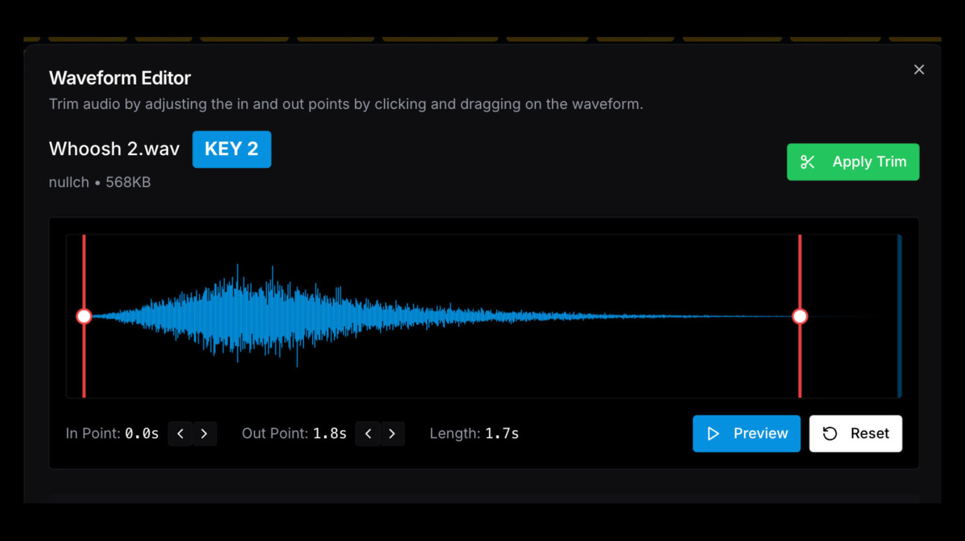 Waveform Trimming. Visually set start and end points for tight sync and looping.